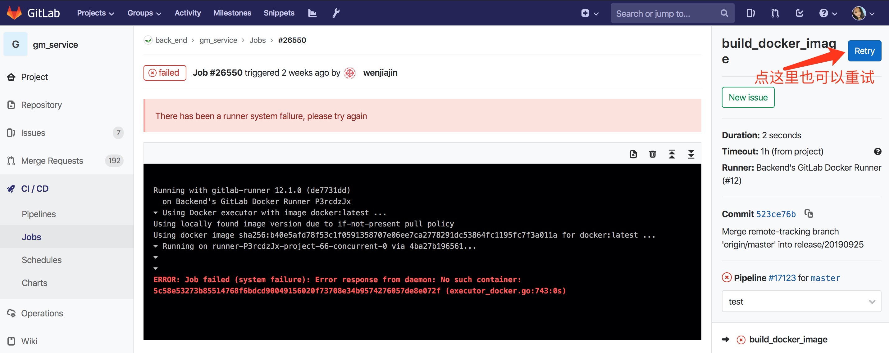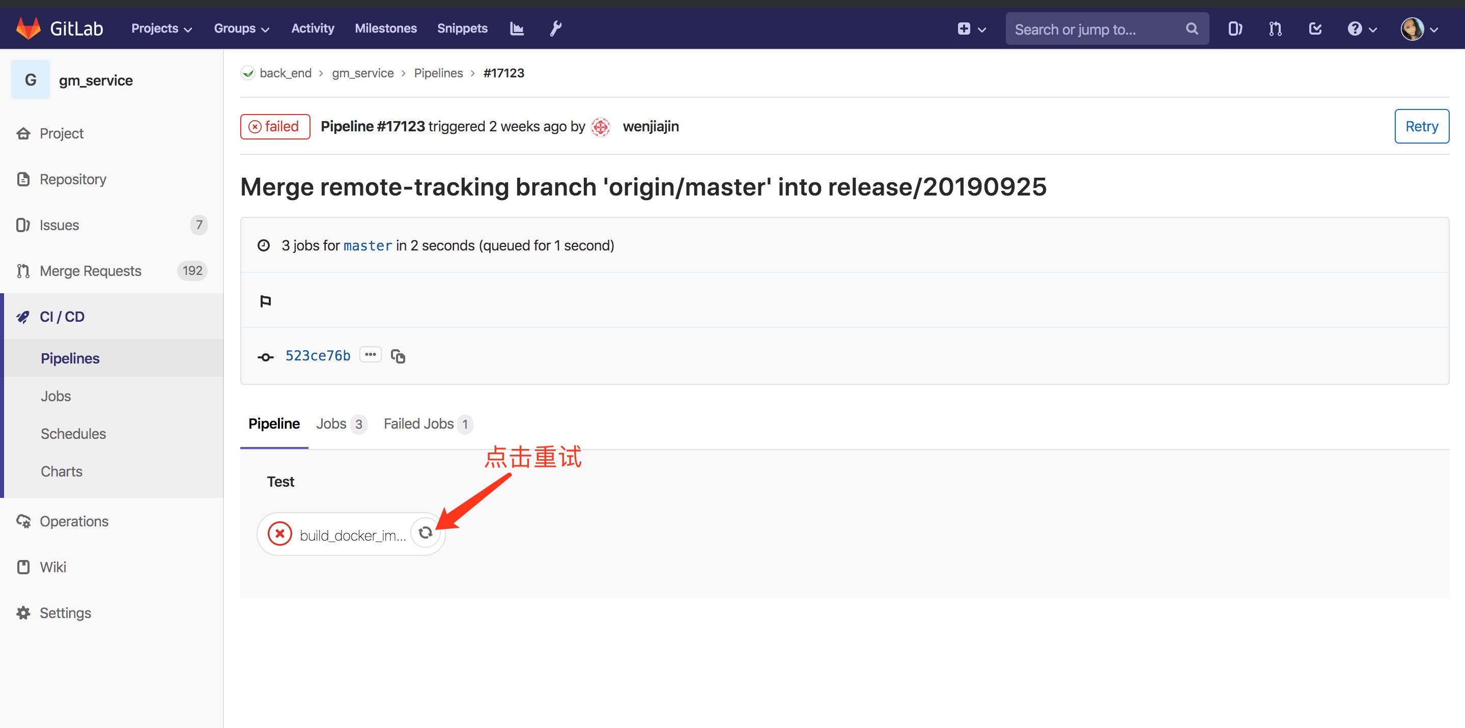 - 或者点进ci 详情里点击重试